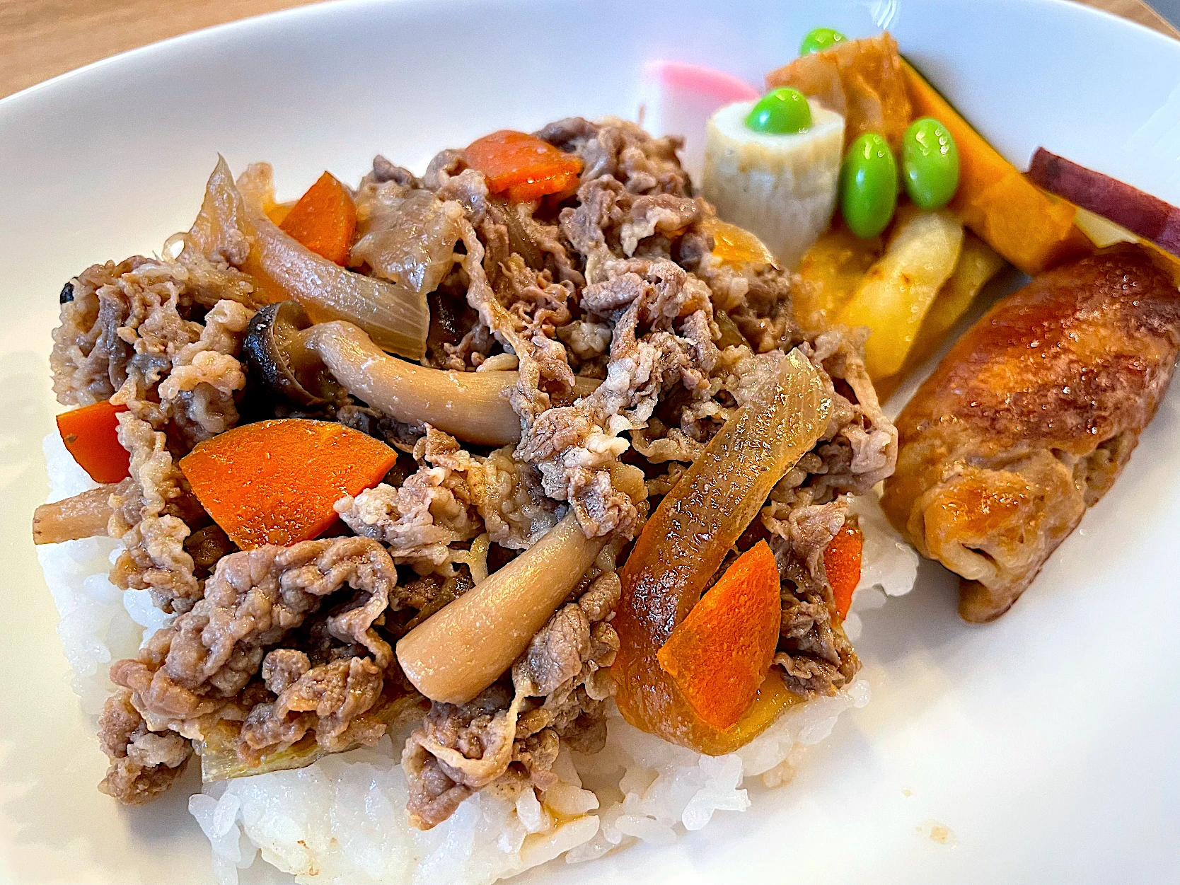 野菜も摂れる牛丼。肉巻きもプラスしてボリューム満点。 #肉料理
