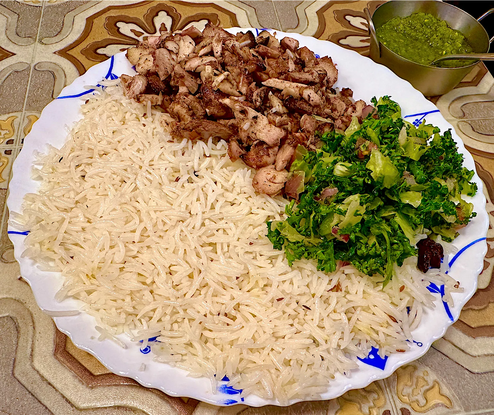 お米はバスマティライス。長さ2センチくらいになる長米種。炊いただけだとパサパサだけど、カレーやビリヤニ、その他炊き込みご飯にすると美味しいのよ😄