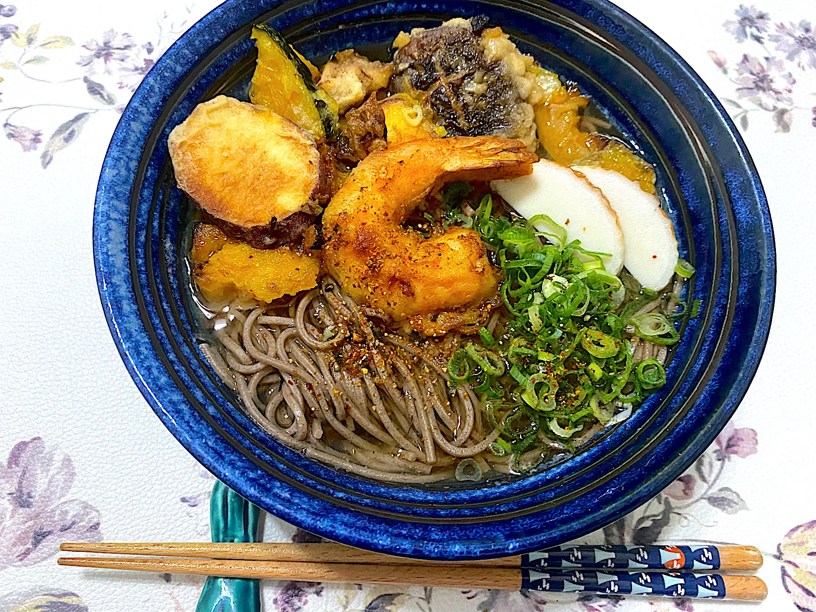 昨日天ぷらを作りすぎたので3食連続天ぷらです😅 今夜は天ぷら蕎麦。秋なので久々にあったかい蕎麦にしました。天ぷらの油が染み出ておいしかった😊