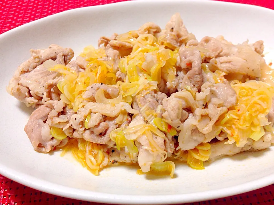 豚肉にピリ辛ねぎソース