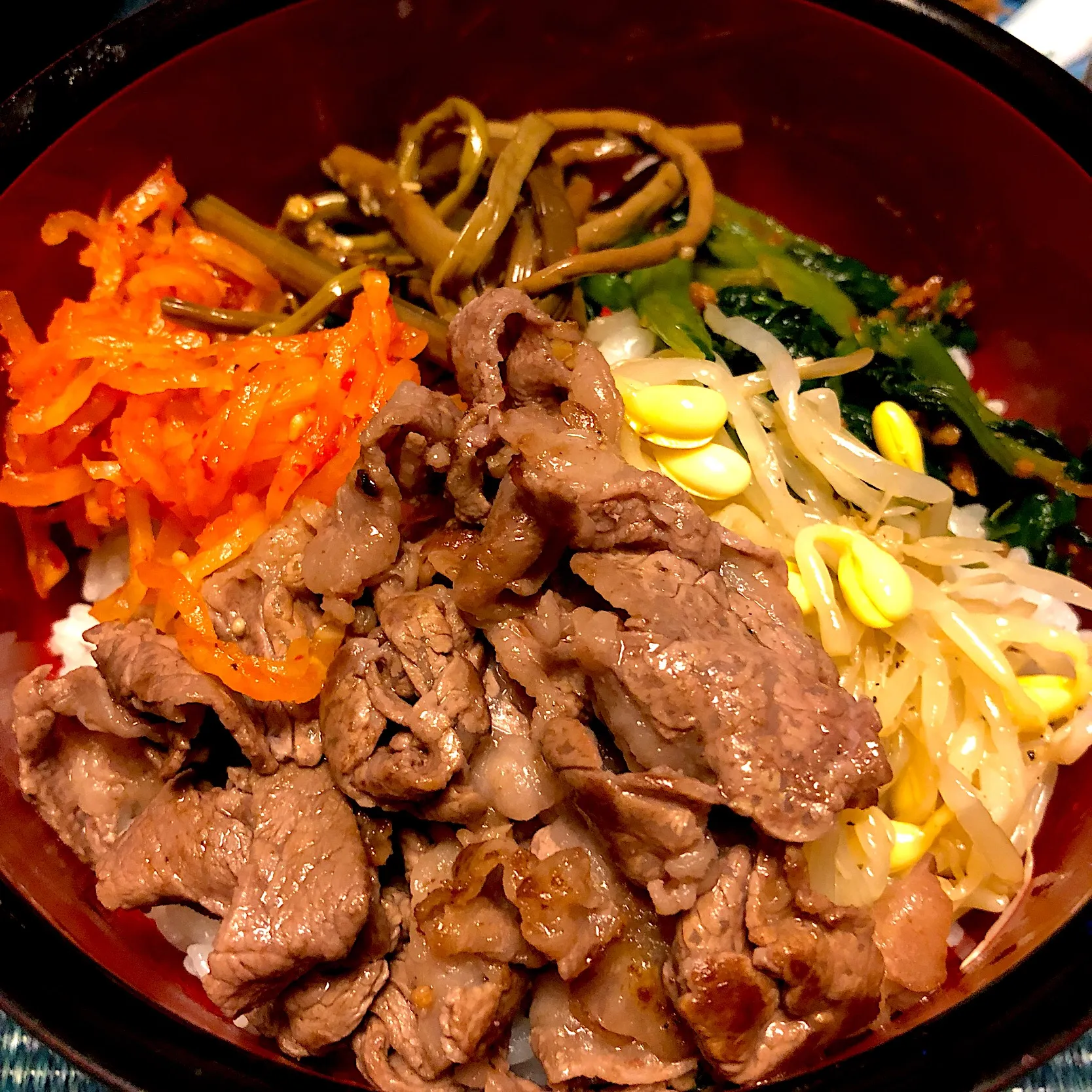 旦那作 ビビンパ  モヤシ、ほうれん草、人参のナムル...