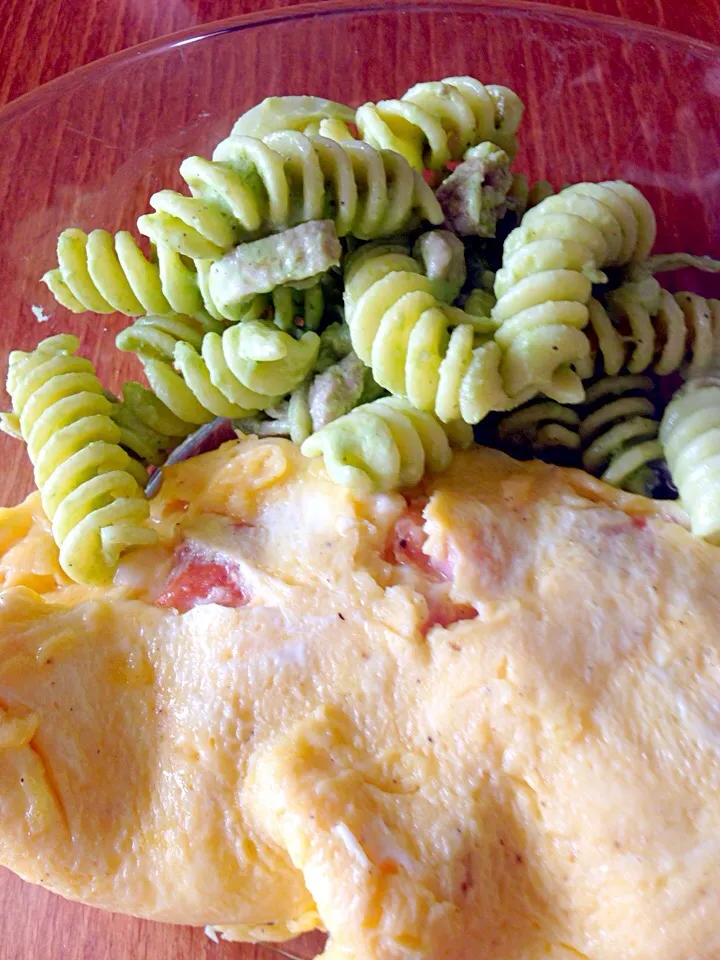 ジュノベーゼマカロニサラダとオムレツ