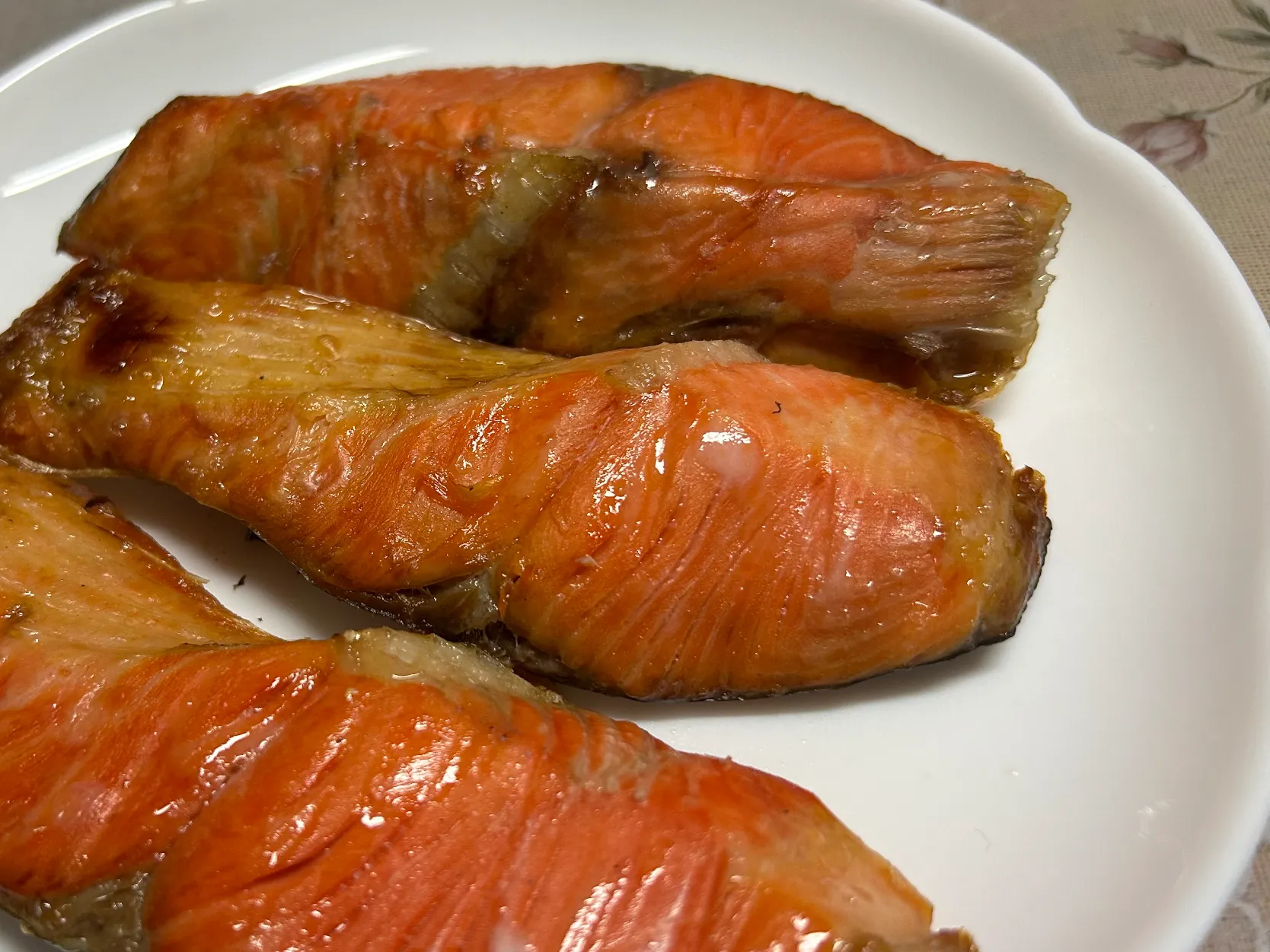 今日の朝ごはん(ごはんは高知県産コシヒカリ、焼鮭(紅...