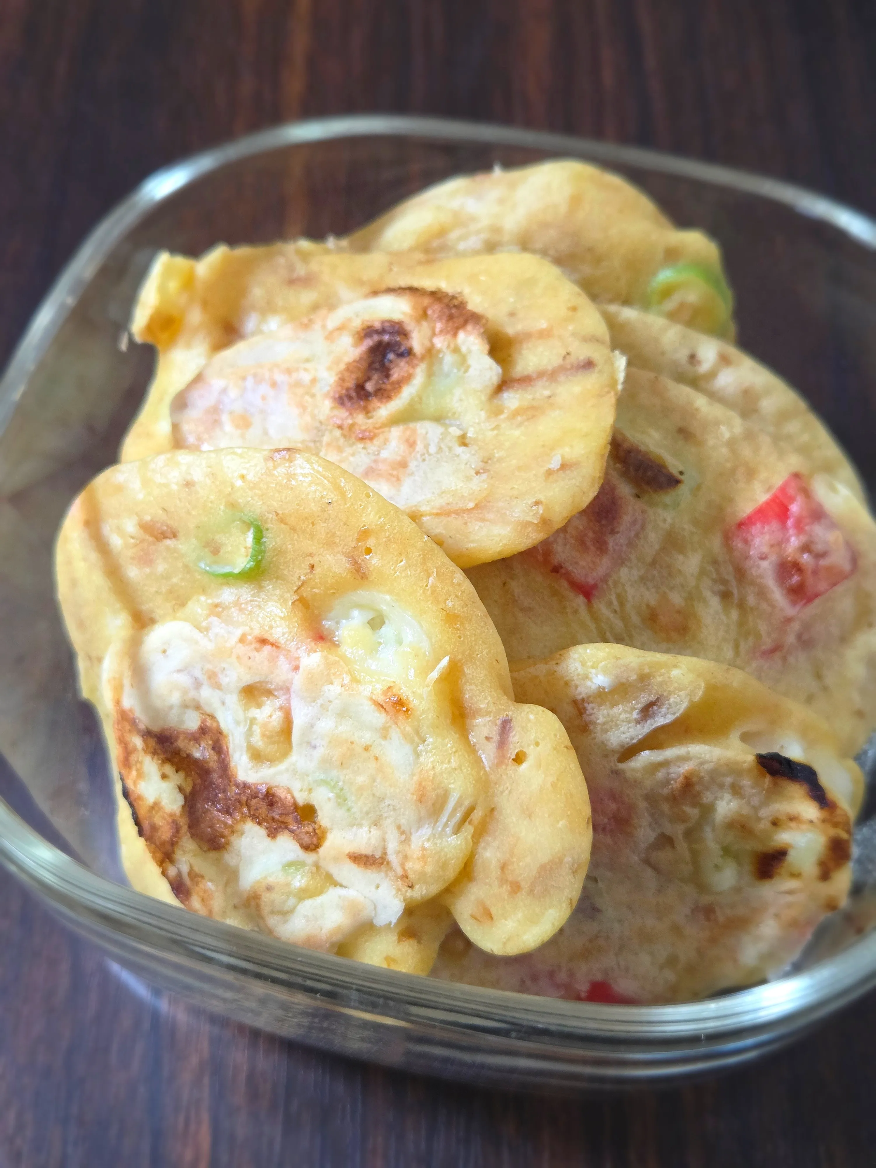 #晩ご飯 #お好み焼き #カニカマ #長ネギ