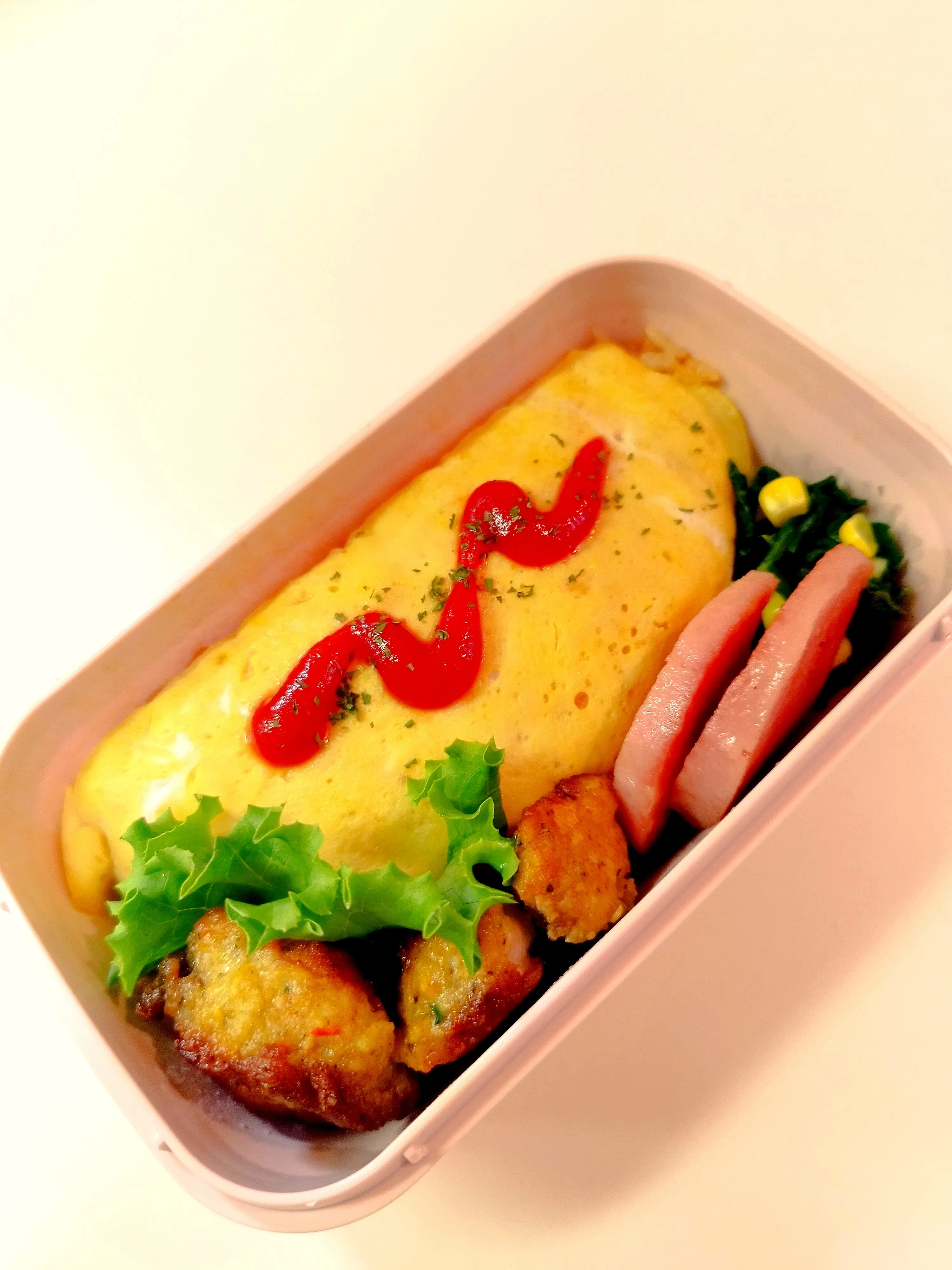 #お弁当 #高校生女子弁当 #オムライス#鶏のカレー焼き#ほうれん草ソテー