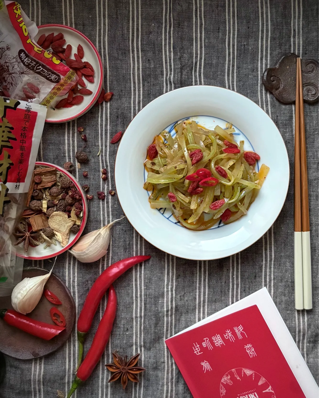 #台湾料理 #中華料理 #涼拌菜 #冷菜 #和え物 #おつまみ #サラダ #台湾風サラダ #中華風サラダ #涼拌莴笋絲 #莴笋 #チシャトウ #ステムレタス #自家製紅油 #紅油 #ユウキ食品 #八角 #花椒 #枸杞 #枸杞子 #クコの実 #世界の食卓探検隊 #おいしい世界ごはんパートナー #おいしい世界ごはんパートナーゴールド #世界調味料旅券 #世界調味料パスポート