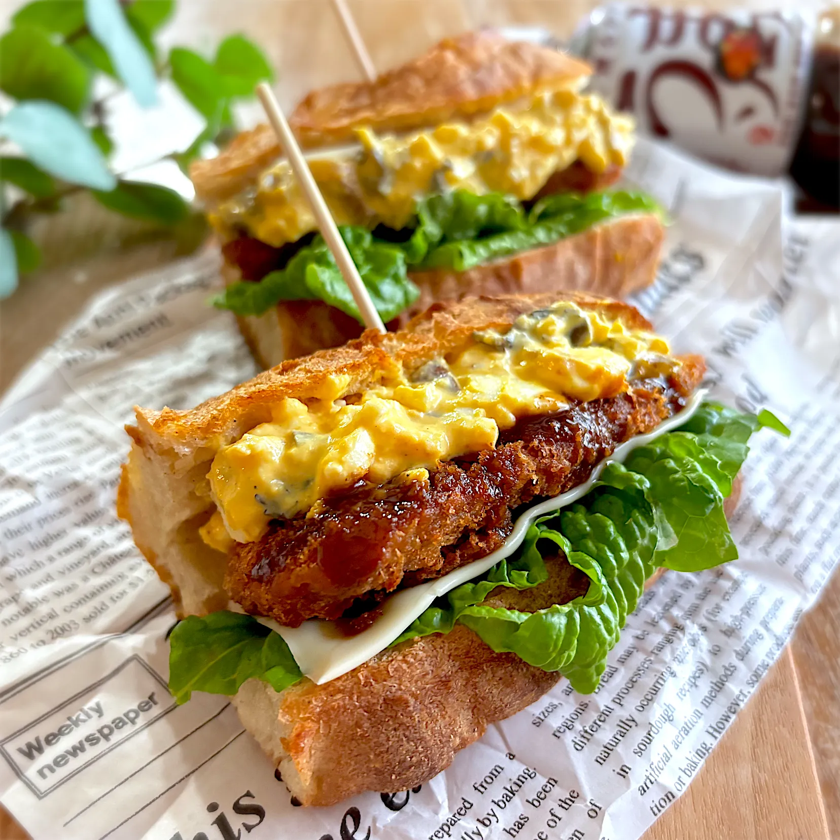 温め直したアジフライにうまソースをかけ、マヨとヨーグルト半々の爽やかタルタルに自家製しば漬けを刻んで入れ、レタスとチーズと一緒にサンド🥪