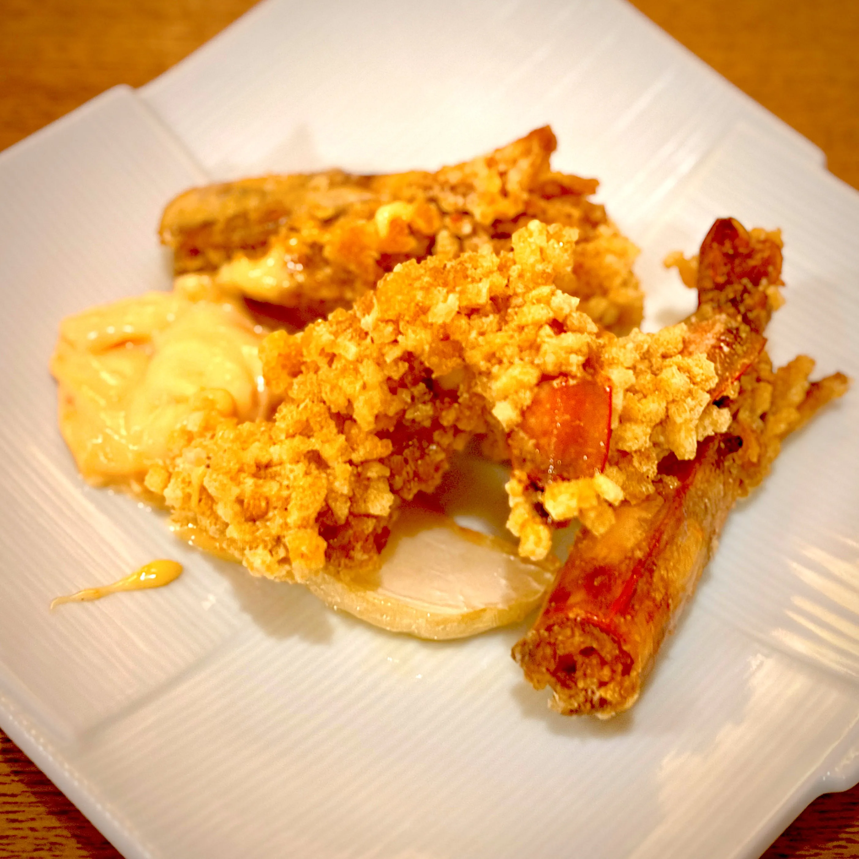 エビ春巻きと鰤のカルパッチョ界隈のものでハイボール沐浴して、締めは海老天・しゃぶしゃぶ・とんかつの乗った咖喱饂飩🍜