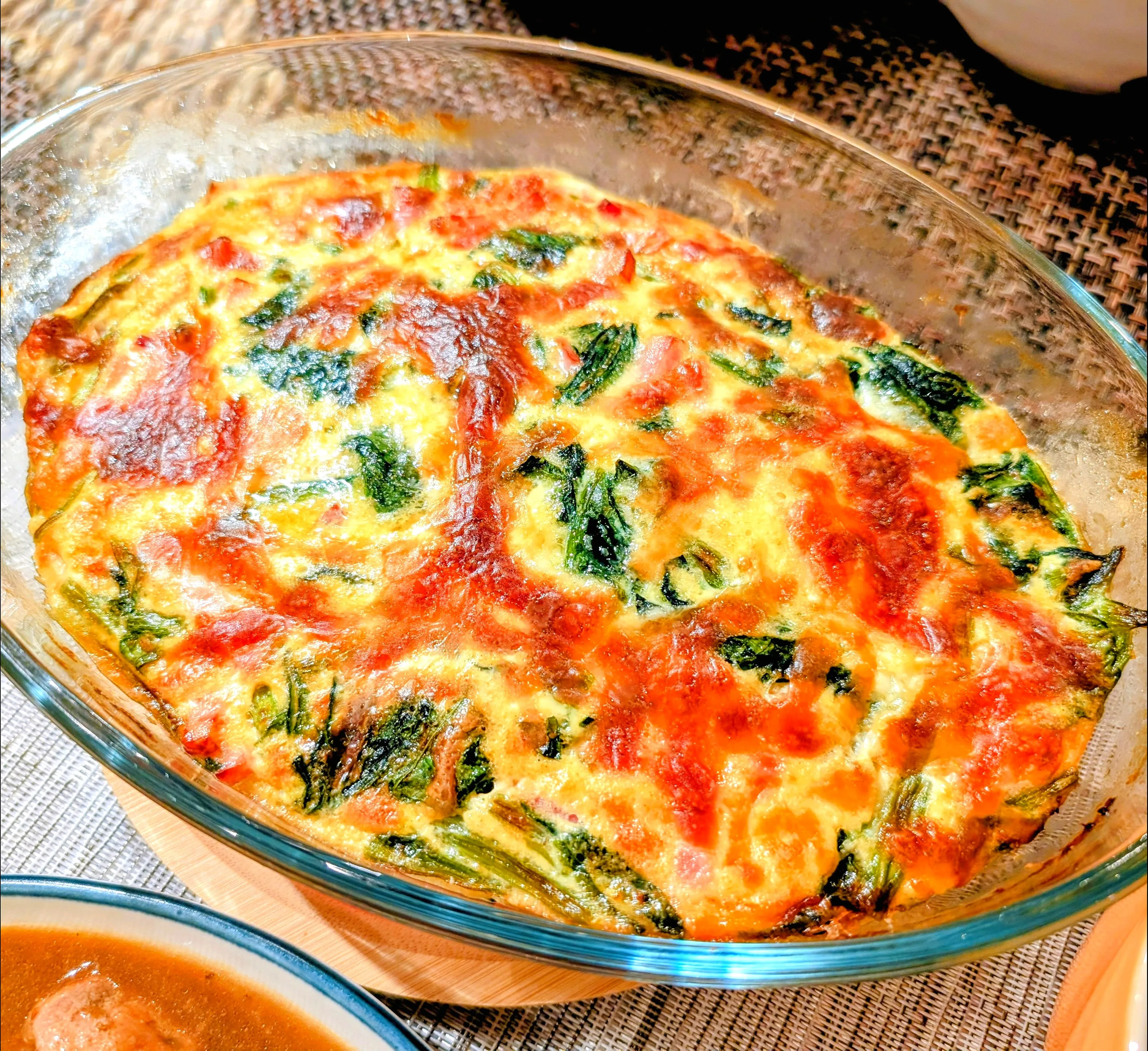 今日の夜ご飯🌠ほうれん草とベーコンのキッシュ✨