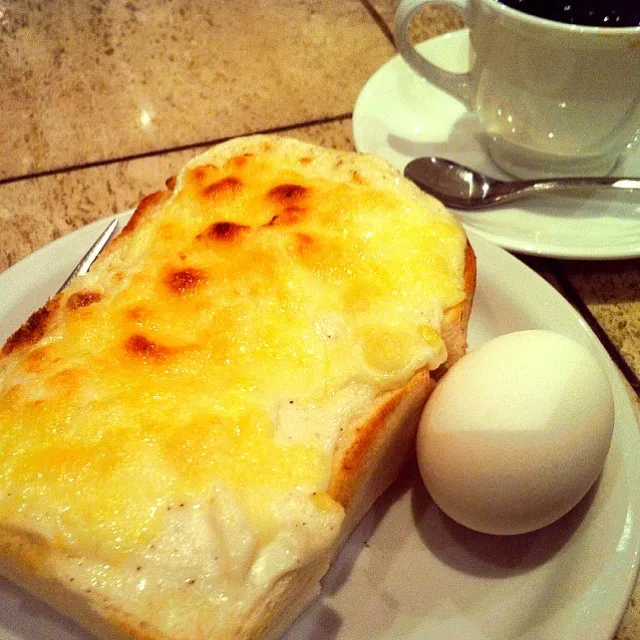 アンサンブル名物グラタンチーズトーストをサイフォン珈琲で。ここは営業時間中すべてモーニングメニュー!!早朝からゲストいっぱい。