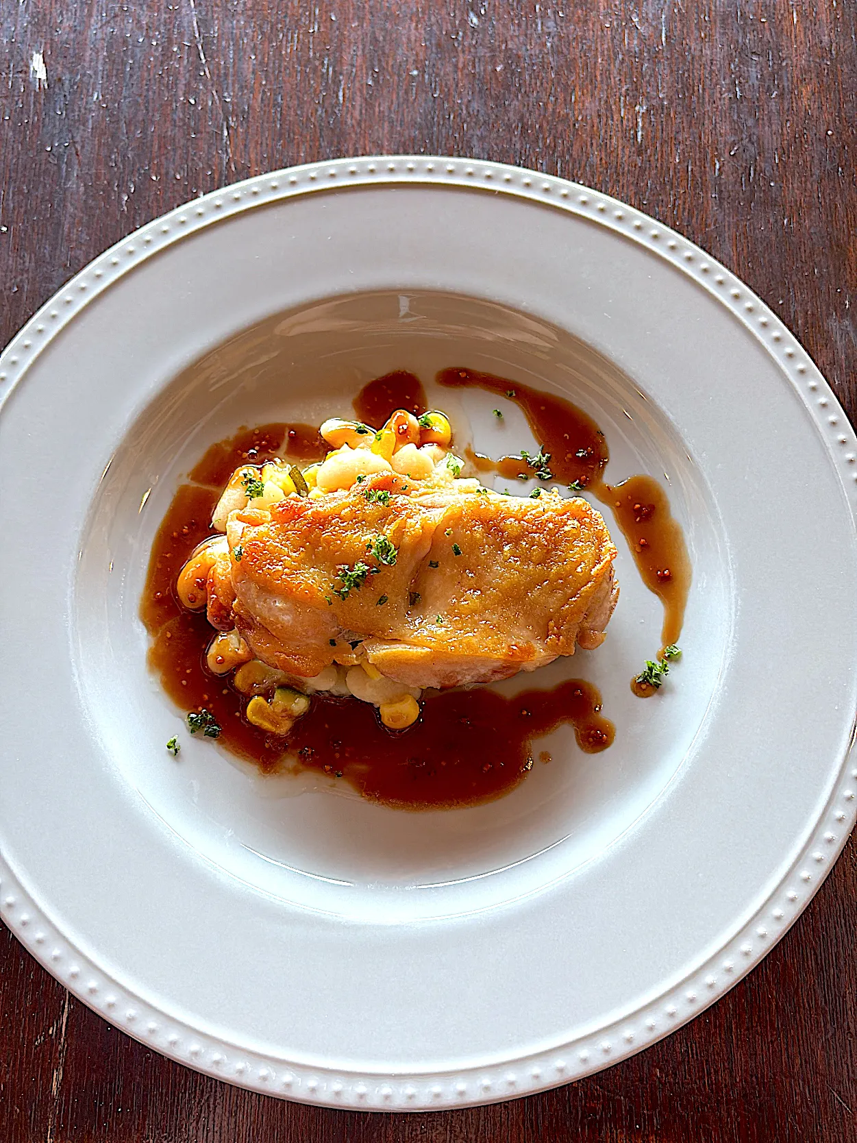 イカリヤ食堂 鶏もも肉のロースト赤ワインソース