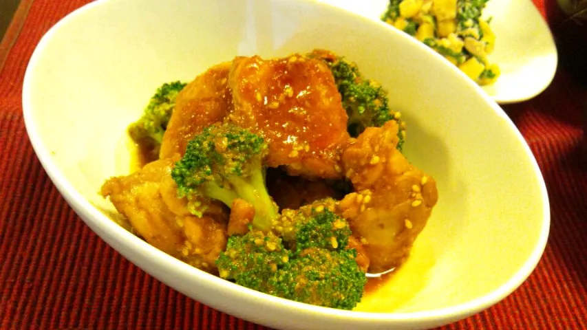 鶏肉とブロッコリーのゴマ味噌炒め♪