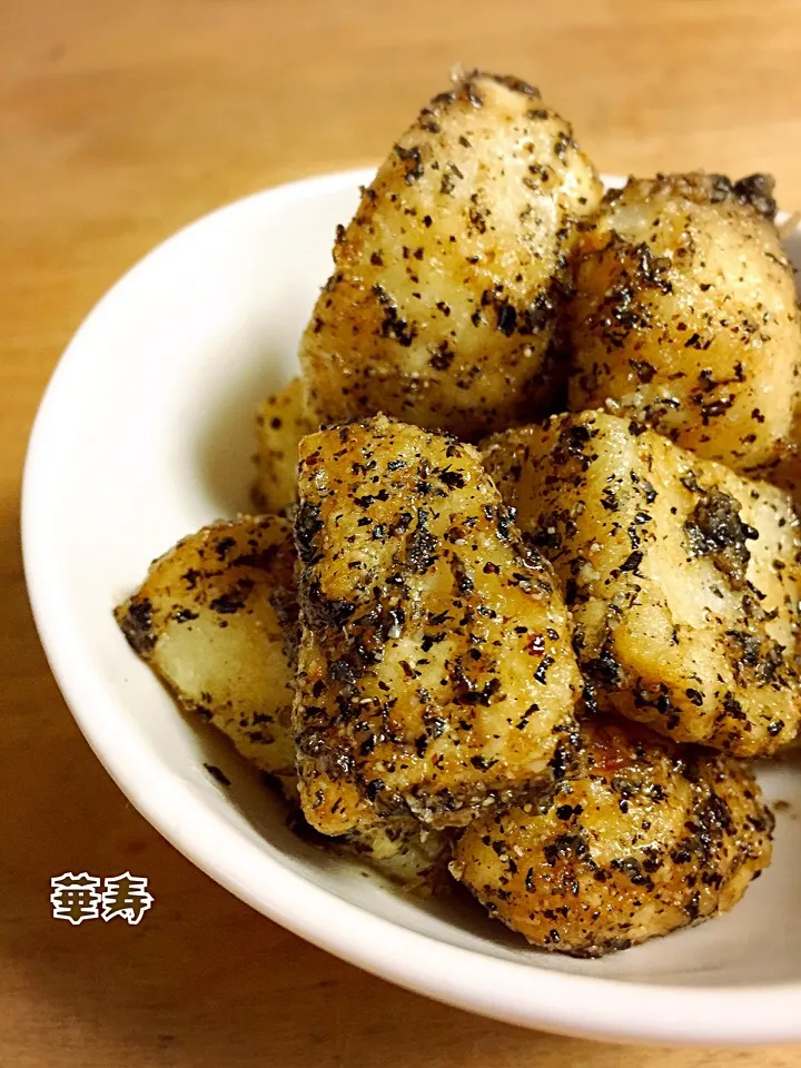 レンチンしたあと、水分をキッチンペーパーで抑えておくと、片栗粉も薄づきで油をあまり吸わずに揚げ焼きでも直ぐにカリッといきます。