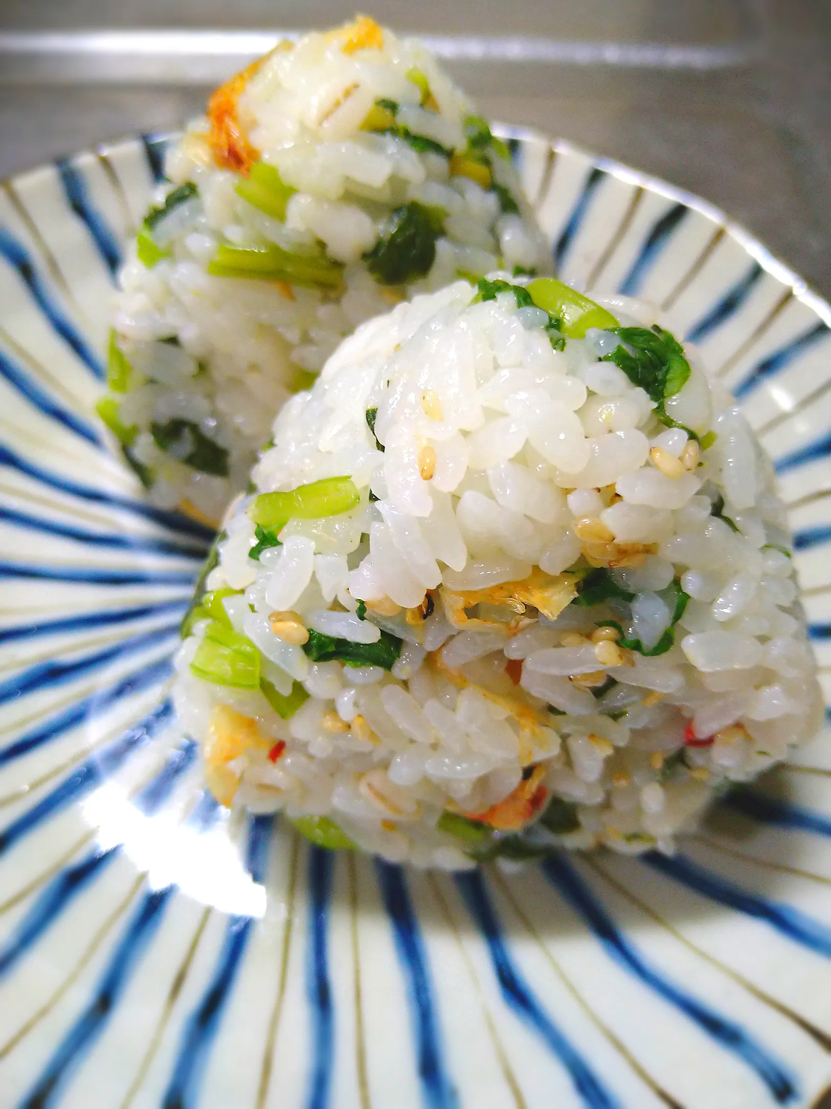 小松菜漬けと桜えびのおにぎり