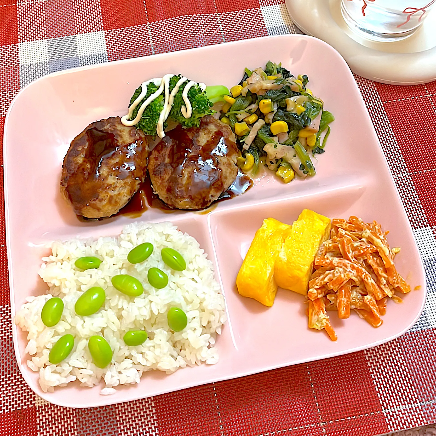 #ハンバーグ #ほうれん草 #卵焼き #夜ごはん #自炊 #記録