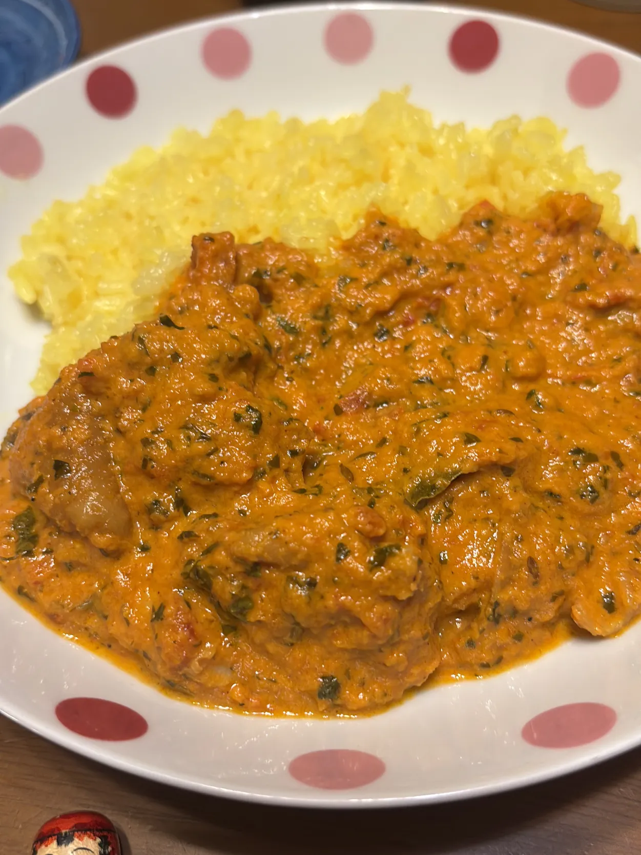 鶏肉の漬け込み、タマネギの茶色になるまでの炒め時間は長く感じましたが、丁寧に頑張った甲斐もあり、おかわりしてしまいましたぁ