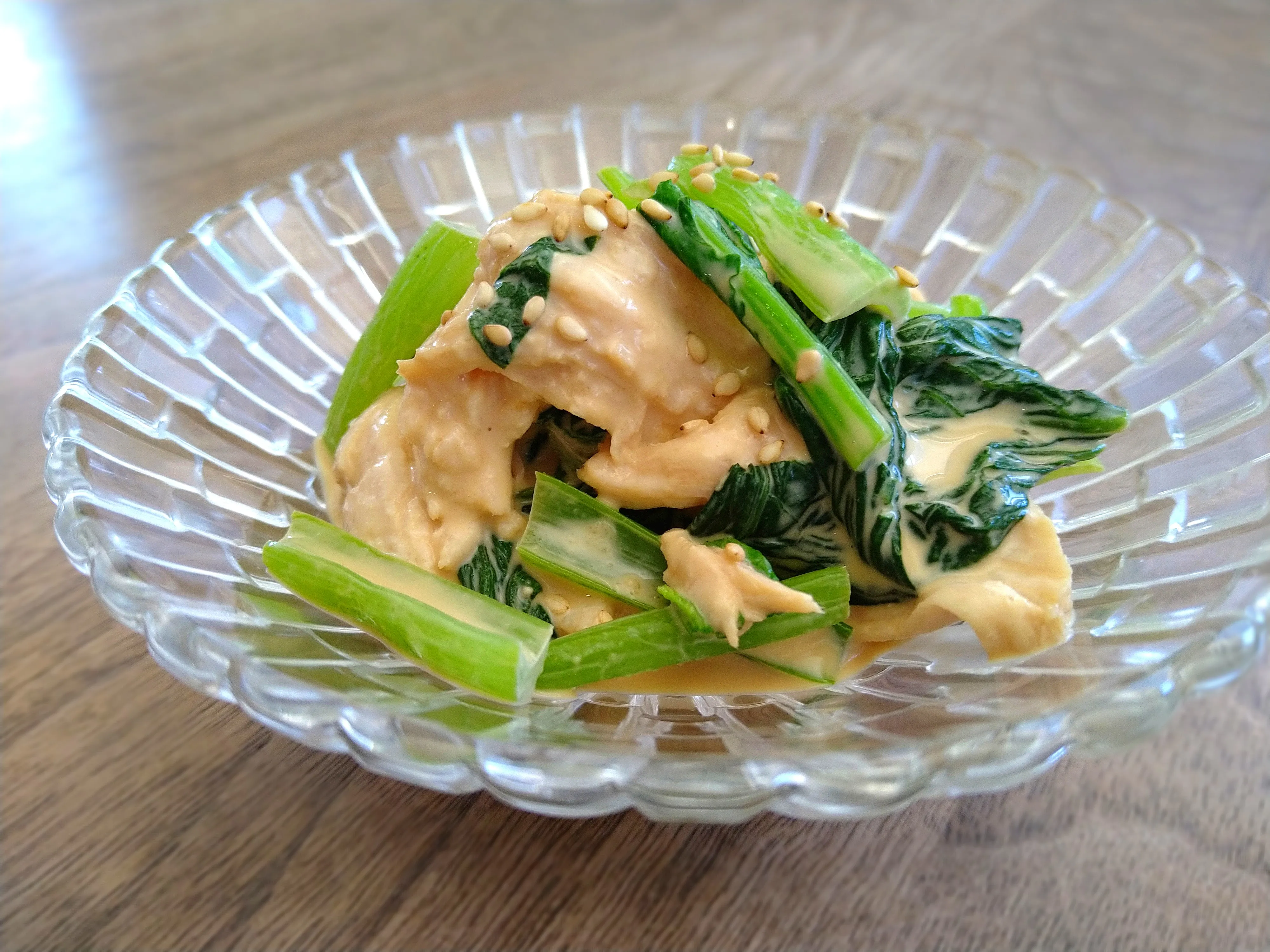 #簡単料理 #節約料理 #野菜料理 #小松菜#葉っぱの日(8月8日) #肉料理 #蒸し鶏#和え物#ごま和え#小鉢#あと一品