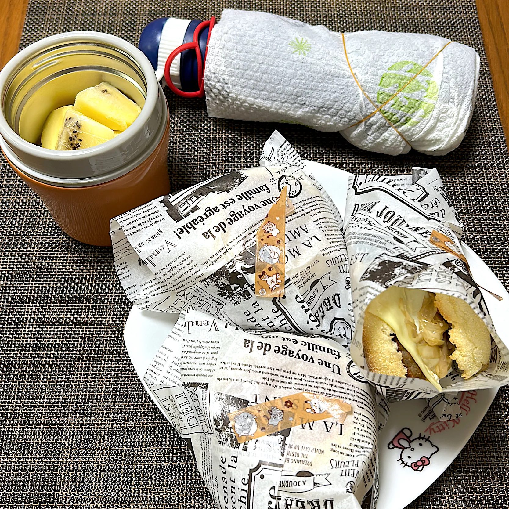 🌸スクランブルエッグ、クリームチーズ、チキンカツ