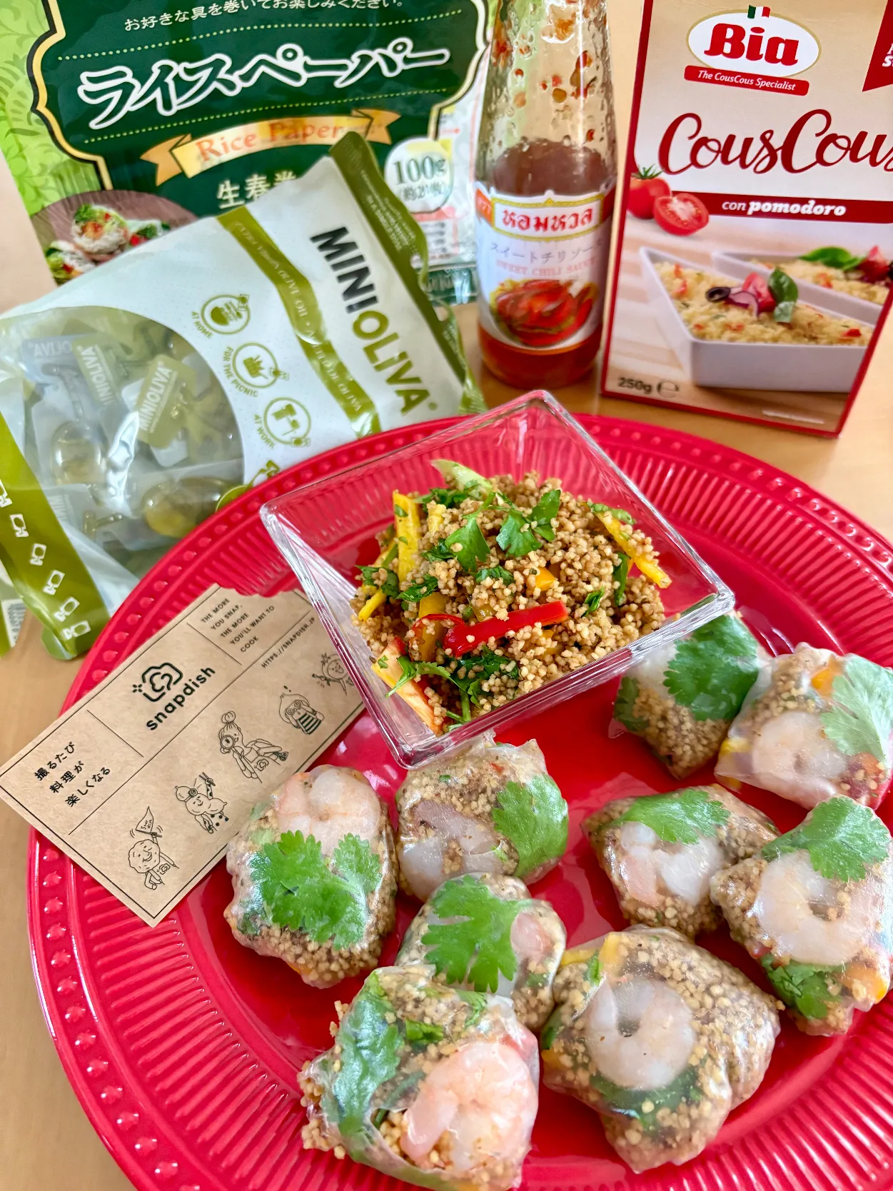 クスクスをライスペーパーで一口サイズに巻くことで食べやすく♡
