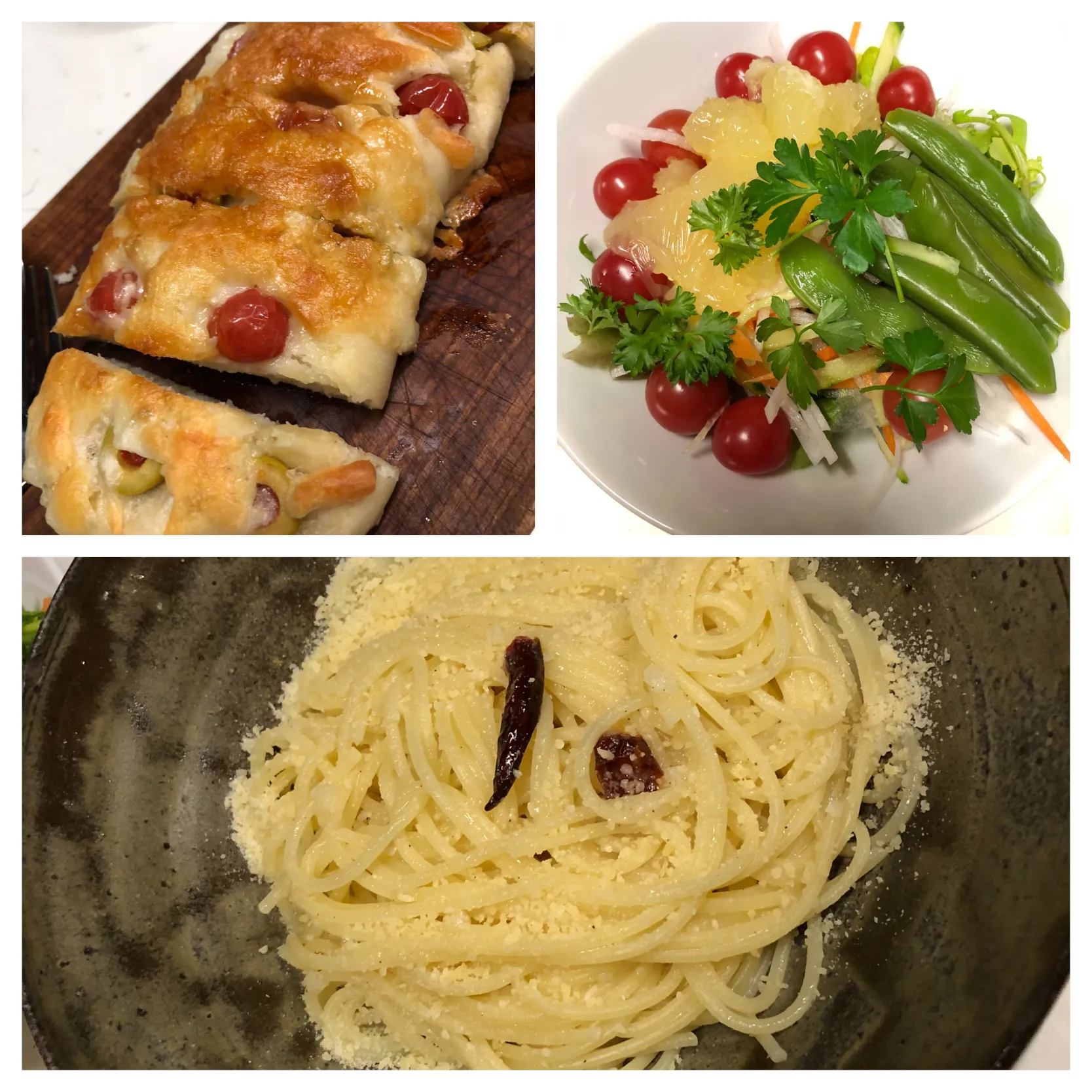 #ニンニク #唐辛子 #オリーブ #トマト #採れたてスナップエンドウ #キッチンハーブ沢山