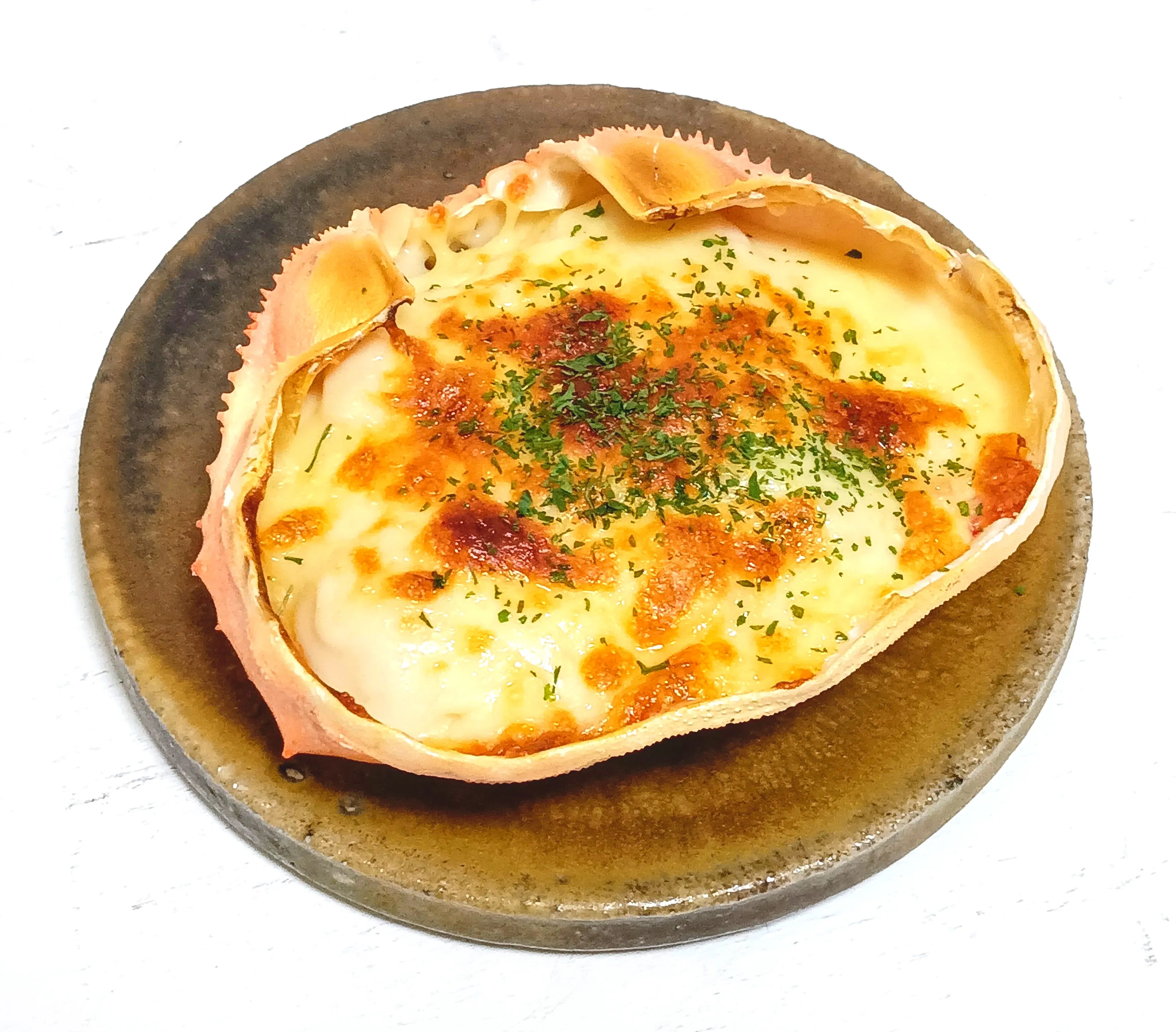 今回は蟹の甲羅に蟹身と味噌をたっぷり入れて溶けるチーズと共に美味しくいただきました😊