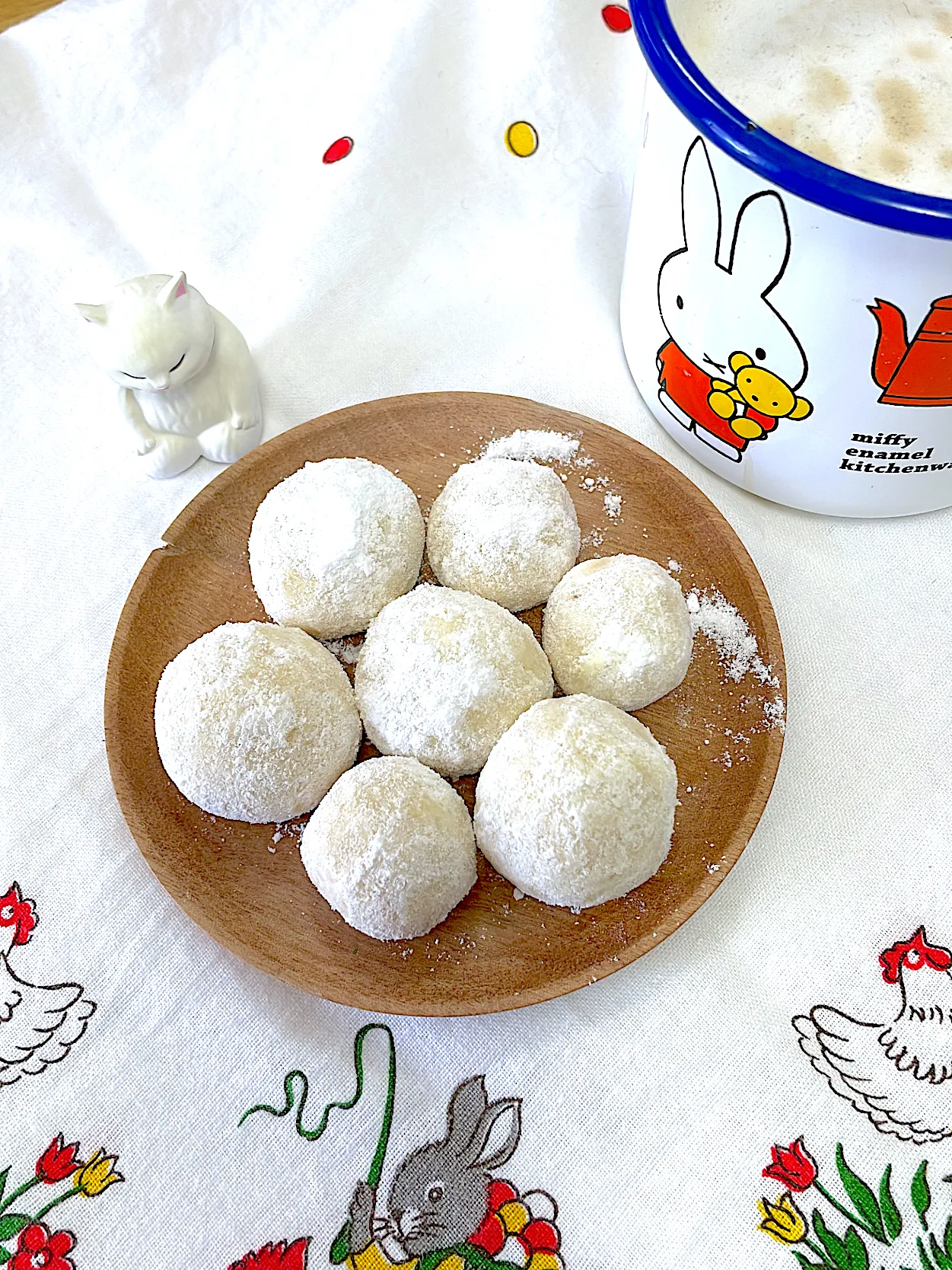 朝起き抜けに弾丸料理٩( ᐛ )وスノーボール。アーモンドプードル抜きの、砂糖がかからなきゃ多分ショートビスコで朝ごはん。