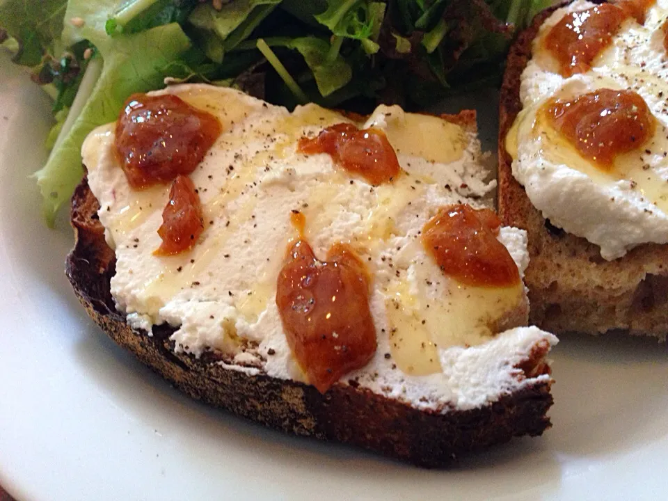 リコッタチーズとはちみつのタルティーヌ(フルーツコンポート添え)