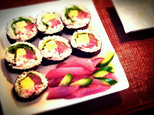 恵方巻が余ったから盛り付けてみた(。・・。)♪