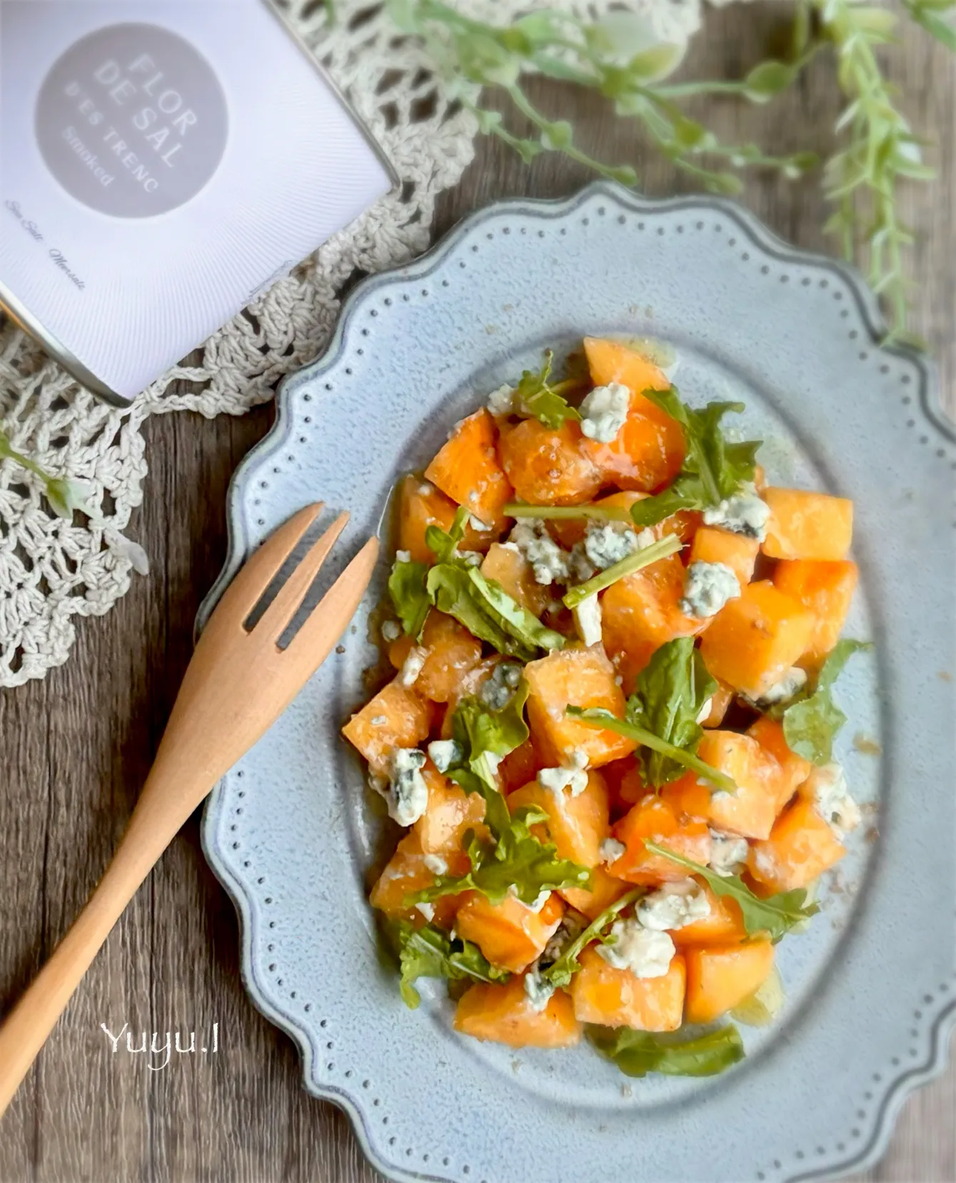 #柿 #かき #スモーク塩 #オリーブオイル #ブルーチーズ #ルッコラ #秋