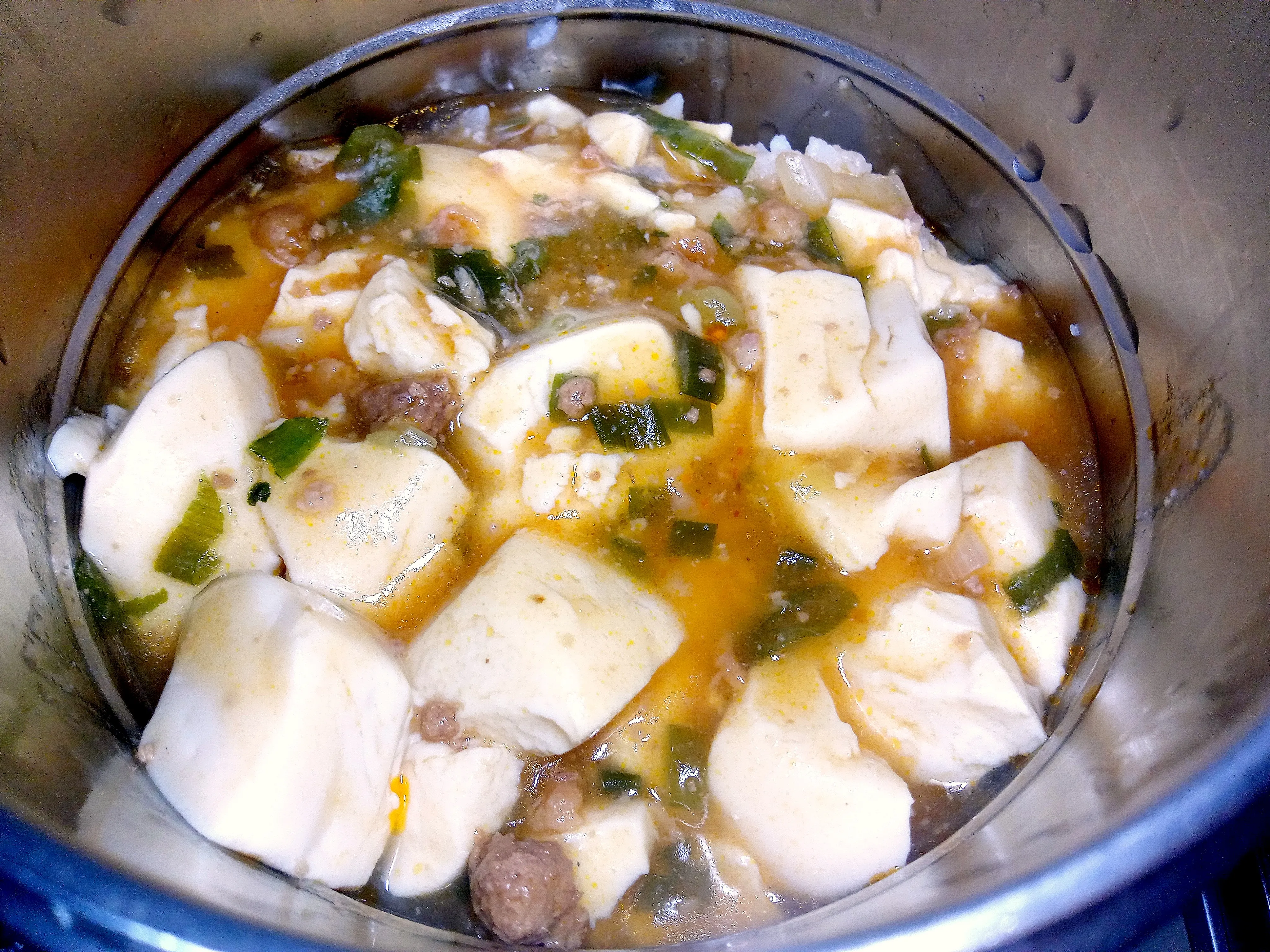夕食は甘口麻婆豆腐丼でした。おろしショウガ、おろしニンニク少々を入れたので、食べ終わる頃には汗だくでした。美味し。
