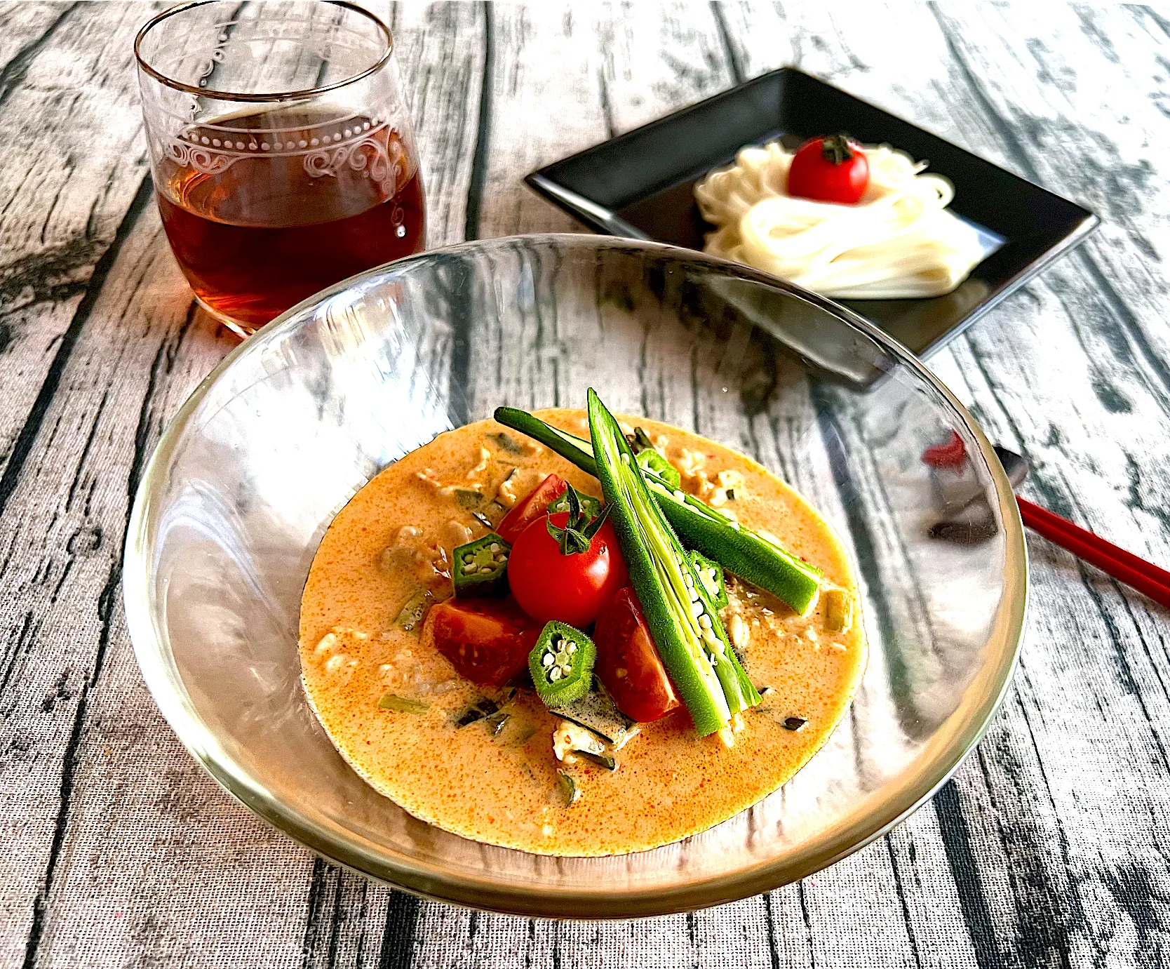 ※にんにく・生姜はチューブを使うと簡単です。※つけダレを盛り付けた後に、オクラ、プチトマト等をトッピングすると、カラフルでお洒落になります。※蕎麦、素麺、中華麺等々、どんな麺でも、美味しいので、是非♪