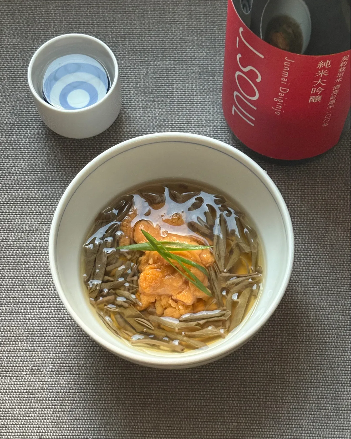 #和食 #秋田の料理 #じゅんさい #蓴菜 #うに #雲丹 #おつまみ #酢の物 #小鉢 #日本酒 #jJ-soul #加賀鳶 #福光屋 #日本酒レビュー #酒レビュー