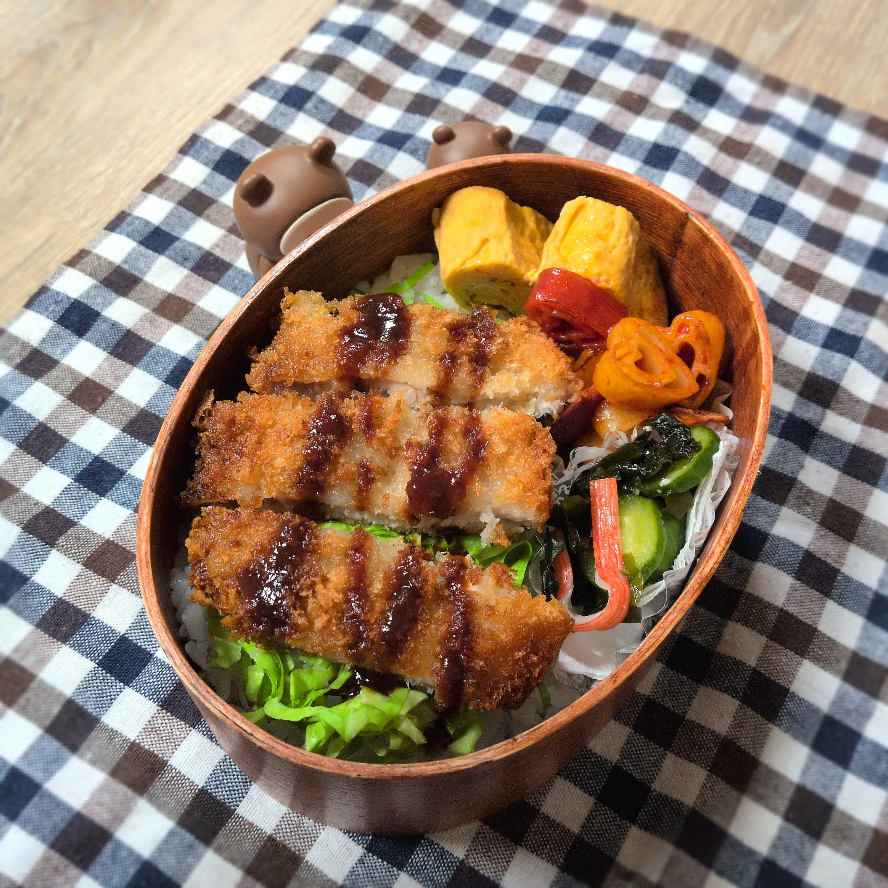 本日は、多めに作っておいたトンカツをお弁当に入れました😆