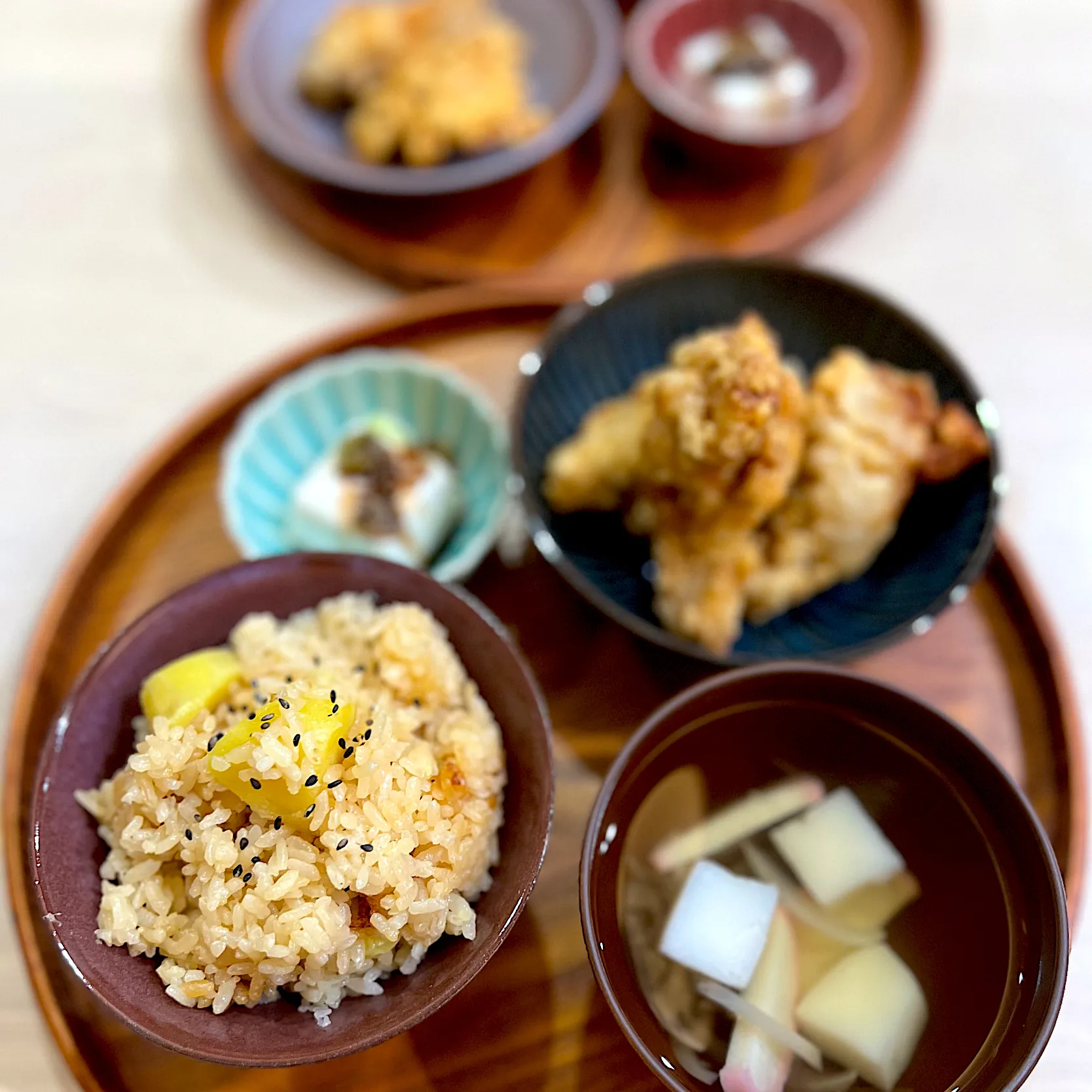ご飯の量増しになりました❤️ #お家cafe #管理栄養士ご飯 #から揚げマニア💜 #さつまいも #夜ご飯