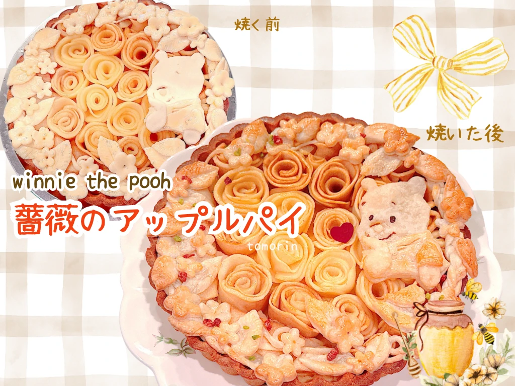 The face details were redrawn with a chocolate pen after baking 🍫 #パイ #アップルパイ #プーさん #pie #applepie #Pooh #キャラ