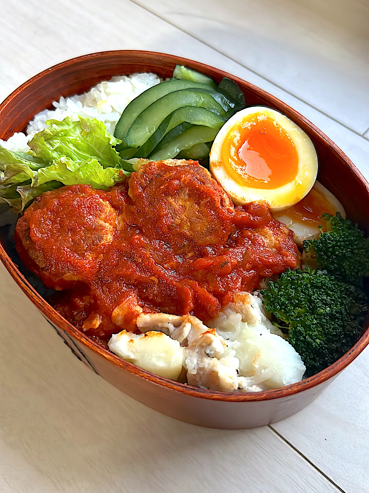 #お弁当 #お弁当記録 #わっぱ #わっぱ弁当 #夫弁当 #豆腐ボールのトマト煮弁当 #obento #lunchbox