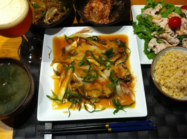 *かつおのたたきのサラダとなすとエリンギのエスニック...