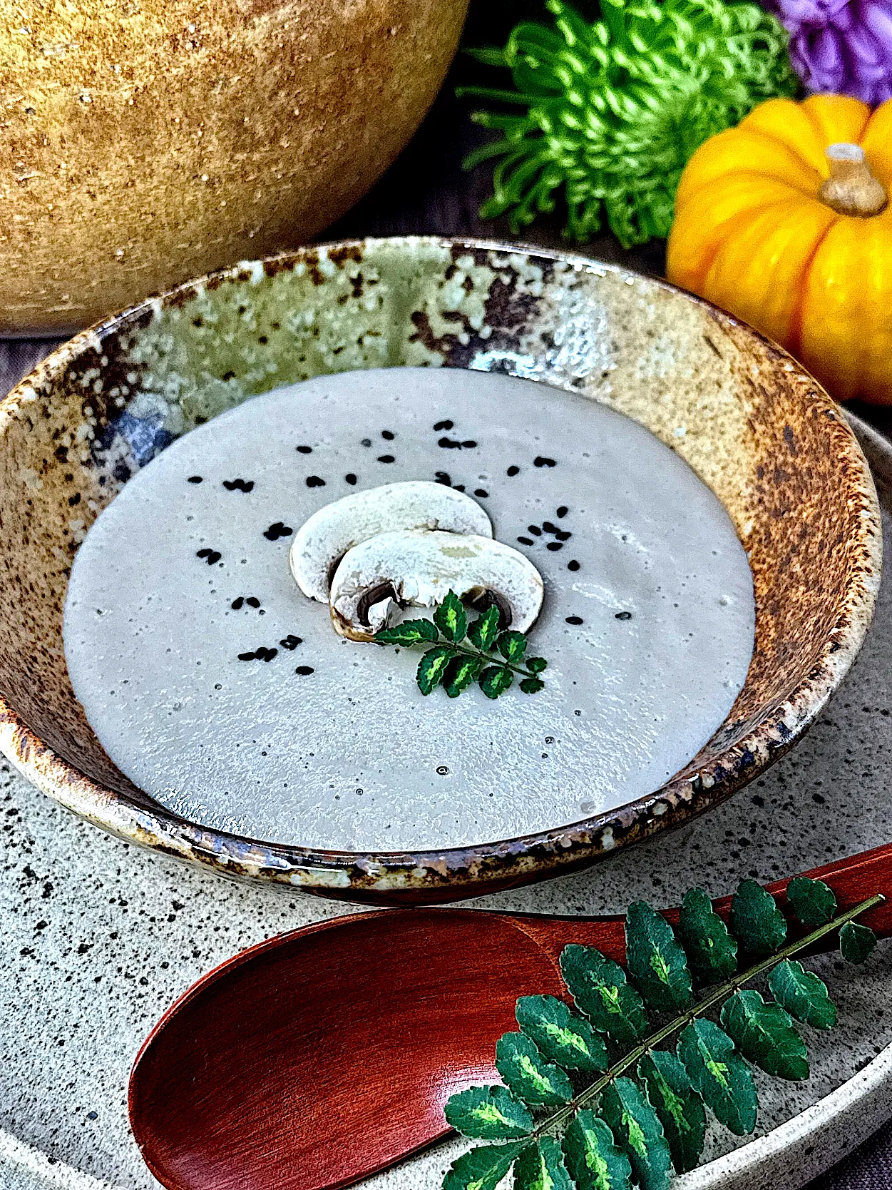 自動調理ポットできのこのポタージュを初めて作りました♪ 濃厚で美味しいポタージュスープが出来上がりましたよ🤗𓂃܀𑁍
