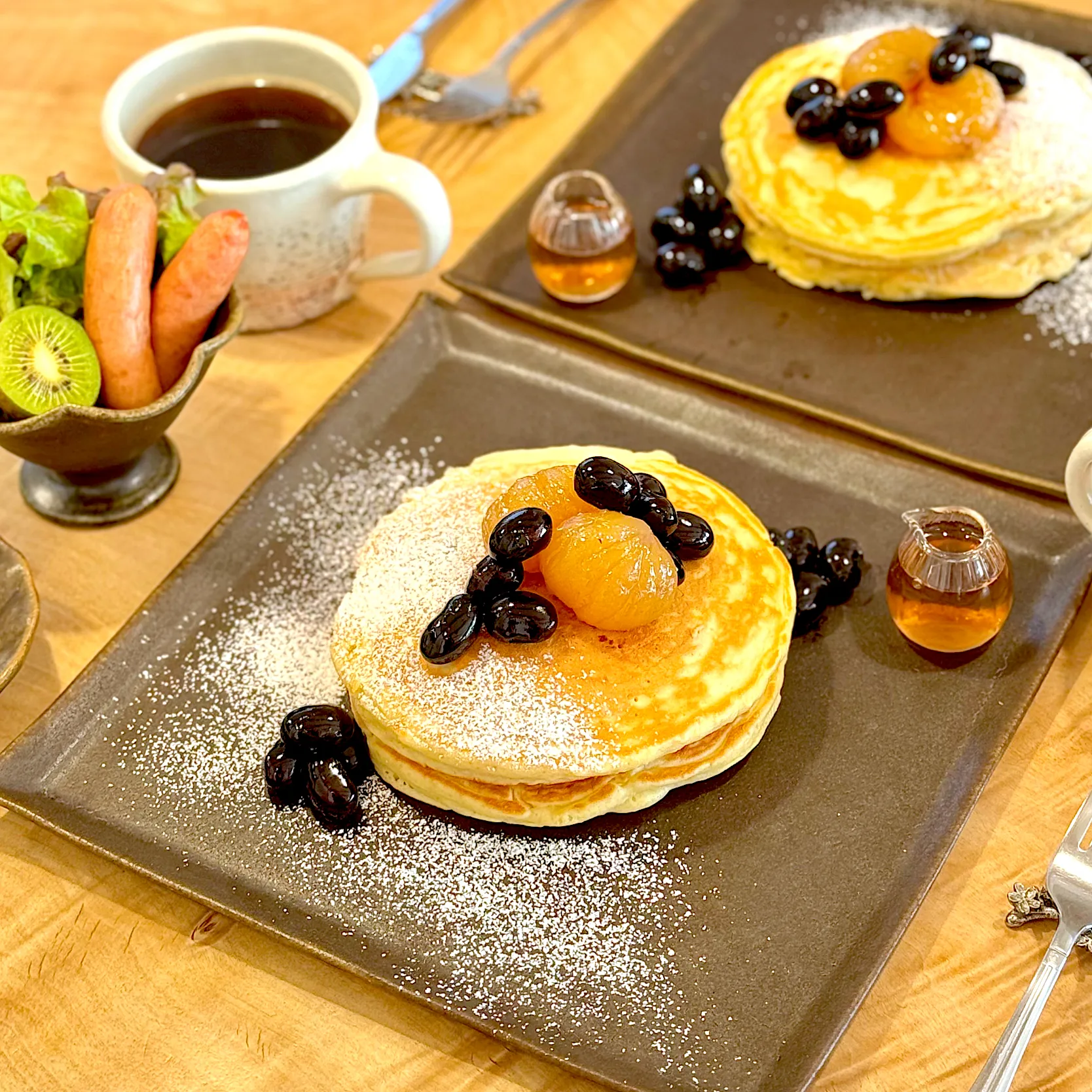パンケーキに黒豆を入れて「黒豆パンケーキ」✨