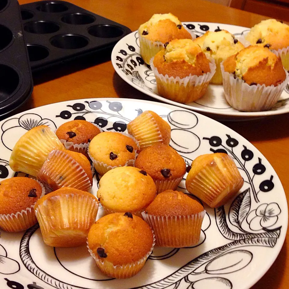 チョコチップマフィン大と小😊