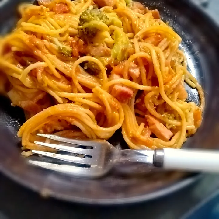 #ベーコン#トマト#パスタ#簡単#ワンパン
