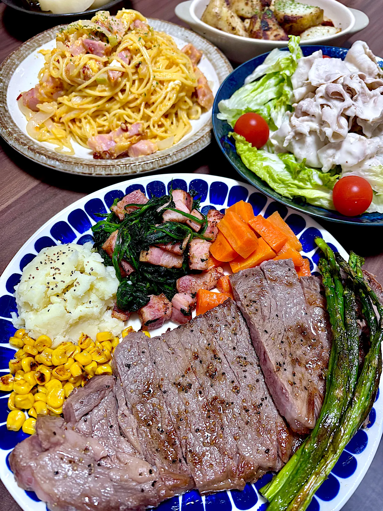 #サラダ #焼く/炒め物 #野菜を使った料理 #ワンプレート #じゃがいも#豚肉#豚しゃぶ#ステーキ#牛肉#ほうれん草#ベーコン#マッシュポテト#パスタ#卵#ぺぺたま#アスパラ