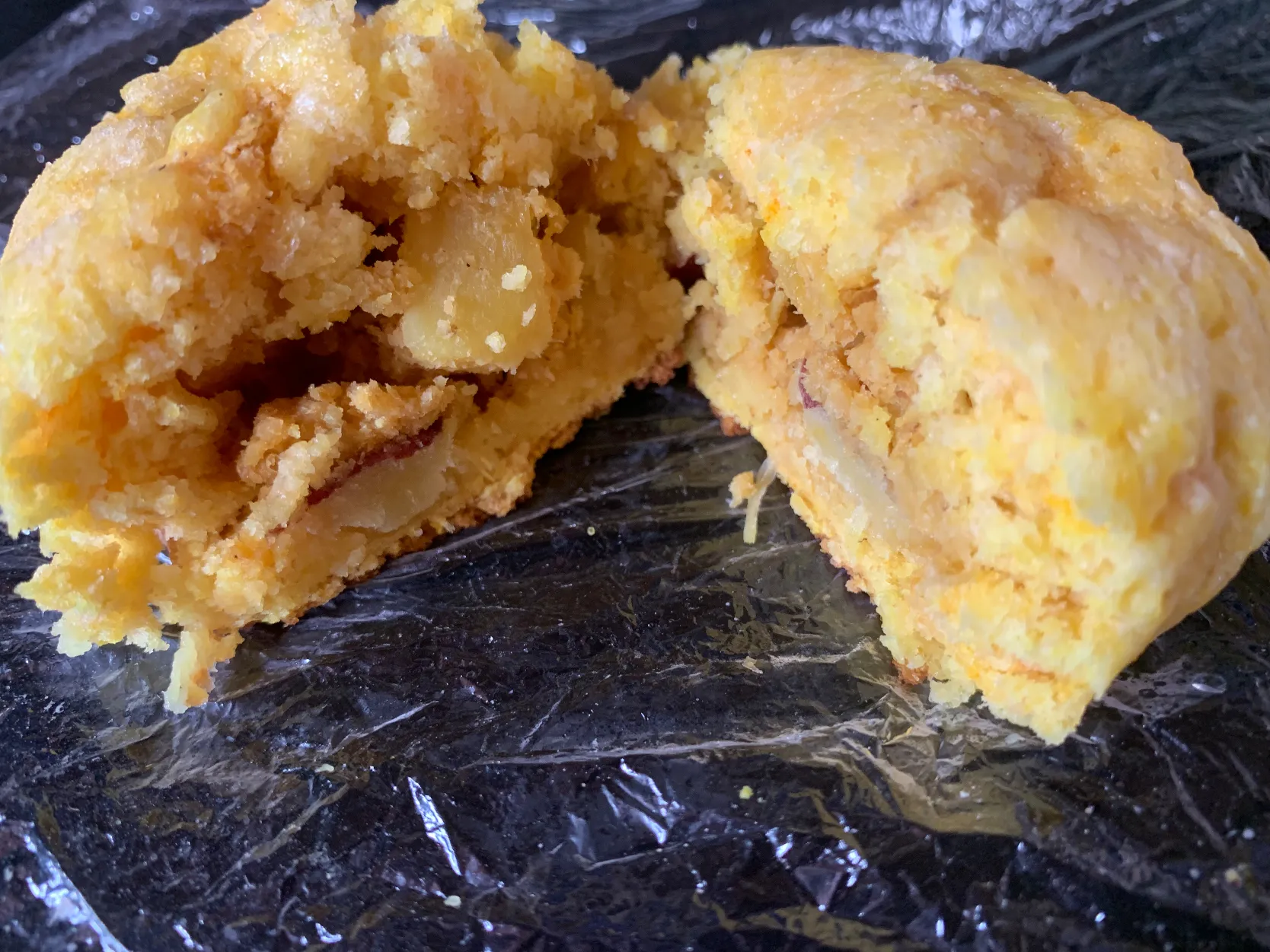 ホットケーキミックス、ヨーグルト、ターメリックで黄色い生地を作ってカレーまんっぽく!