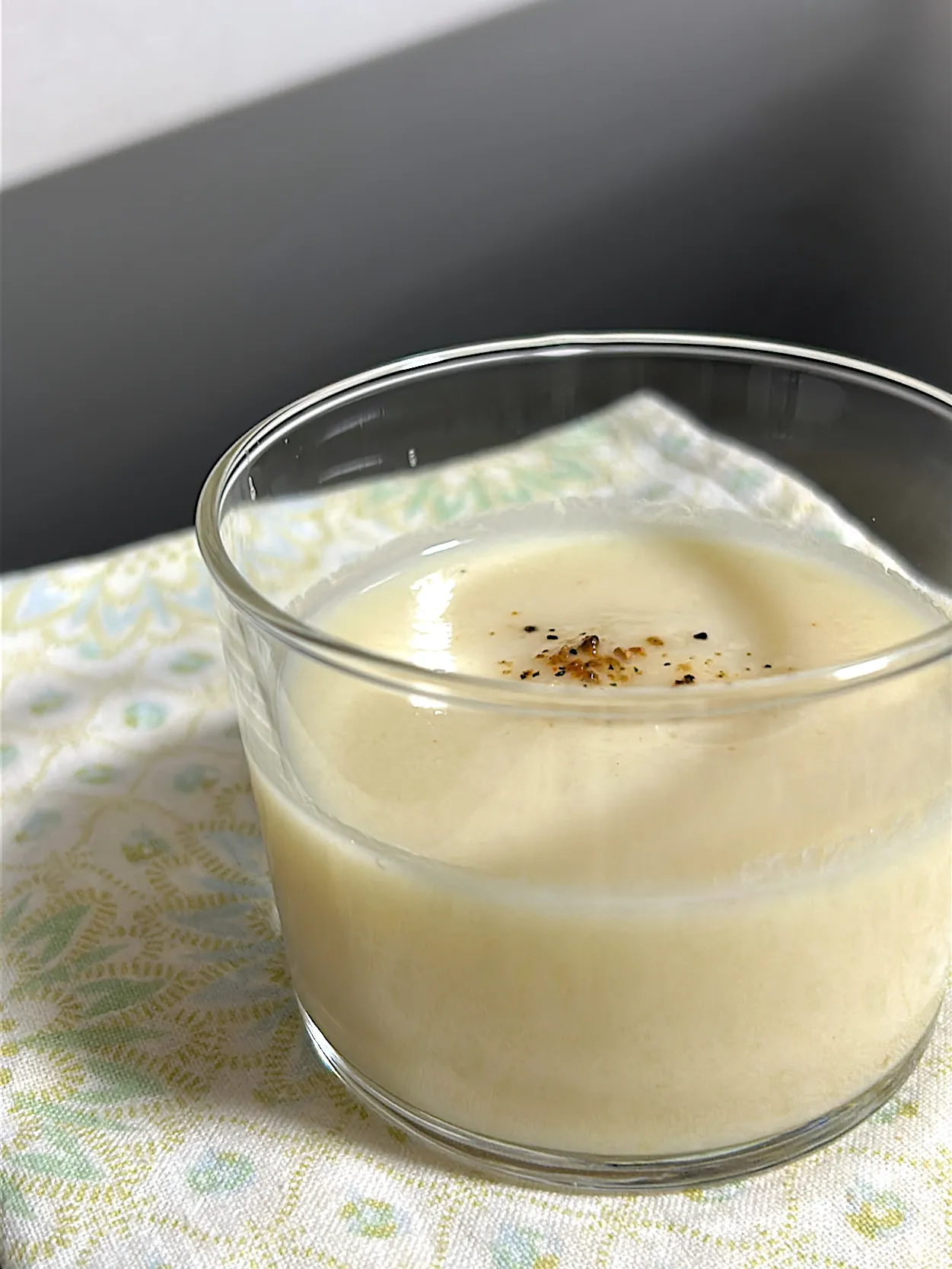 でも捨ててしまうのも気が引け、濾してスジを取り除きコンソメと牛乳でポタージュに変身。
