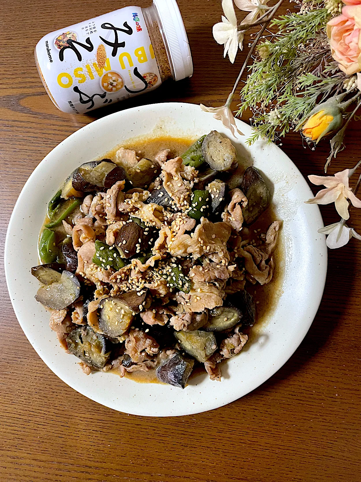 具沢山な豚肉と茄子とピーマンのつぶみそ炒め✨とっても美味しそうです😍