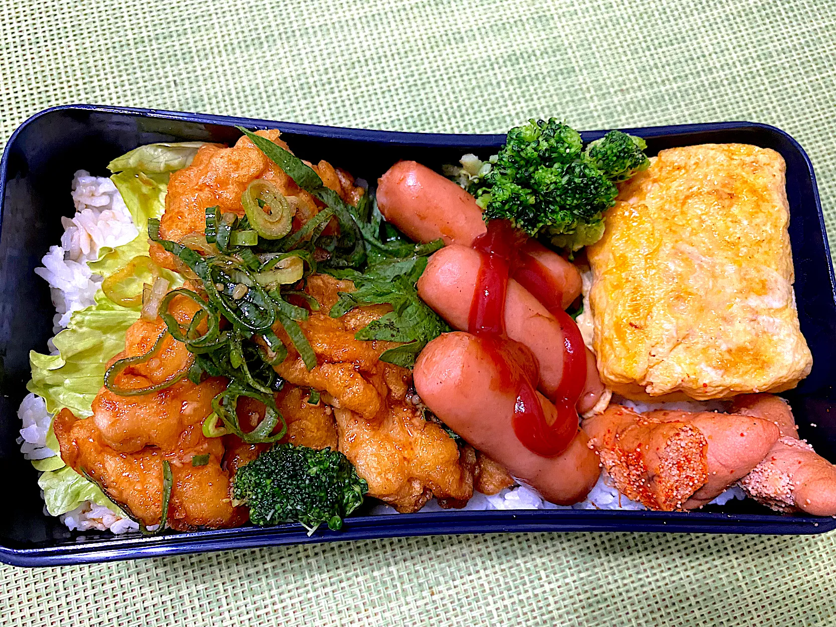 #簡単料理 #単身赴任 #お弁当 #揚げ物 #油淋鶏 #ボイルウィンナー #卵焼き #焼きたらこ