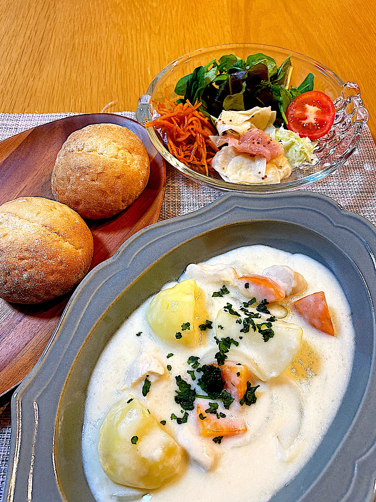 #ホワイトシチュー #晩御飯#サラダ#煮込み料理