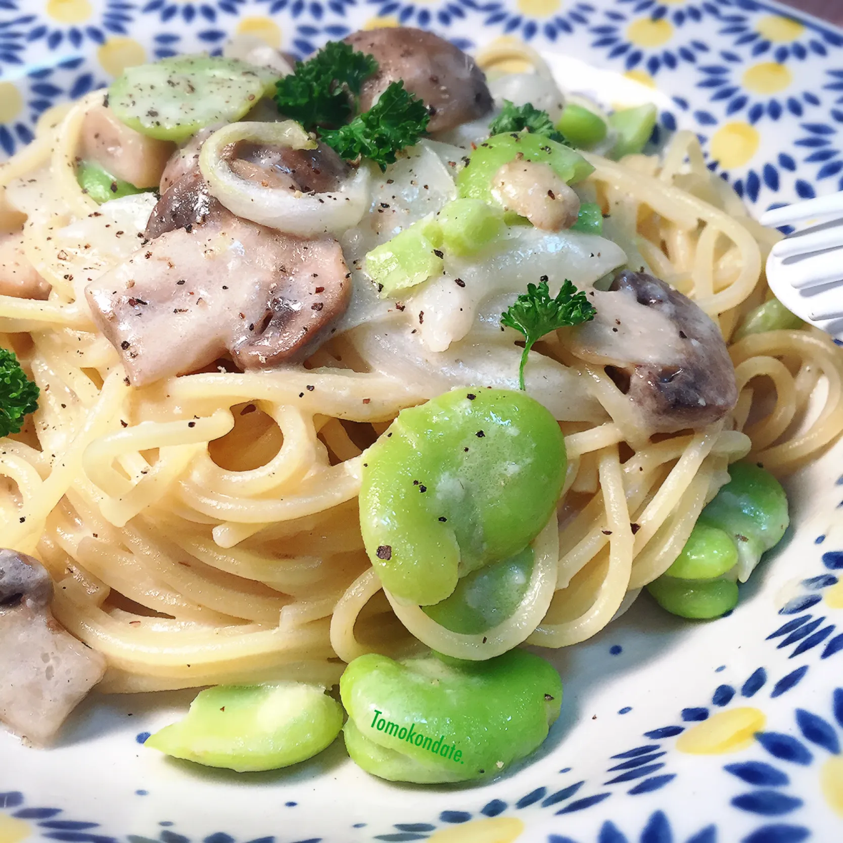 空豆とマッシュルームのクリームパスタ♩|🇯🇵ともこちゃん。さん