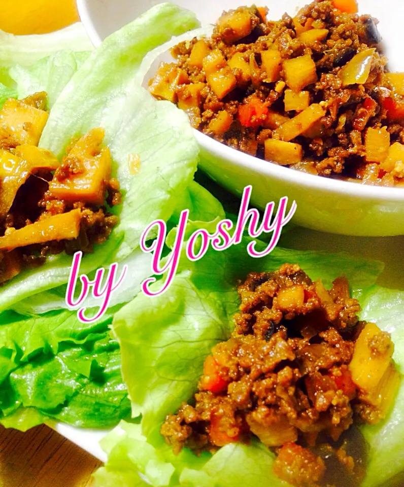 いただいたたけのこ消費のため、レタス包みを作りました。