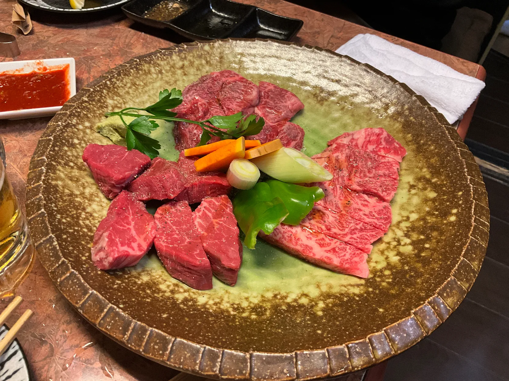 わさび醤油で頂くお肉  飛騨牛のカイノミ ハラミ ヒレ